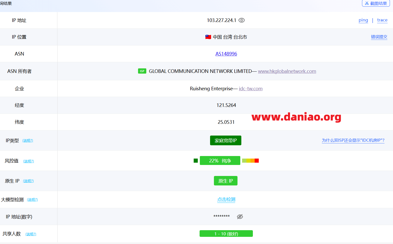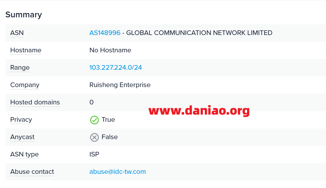 1 103.227.224.1 AS148996 中国 中国台湾 台北市
