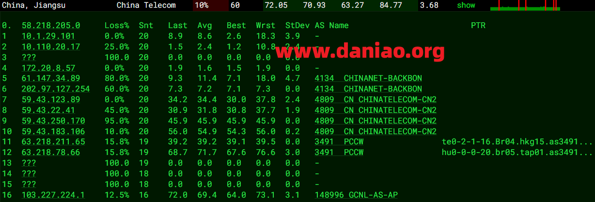 9 59.43.245.82 * [CN2-BackBone] 中国 广东 广州 CN2→163 chinatelecom.cn 电信
