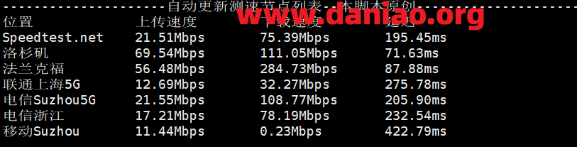 ------------------------CPU测试--通过sysbench测试------------------------- -> CPU 测试中 (Fast Mode, 1-Pass @ 5sec) 1 线程测试(单核)得分: 1201 Scores 2 线程测试(多核)得分: 2375 Scores --------------------内存测试--感谢lemonbench开源---------------------------- -> 内存测试 Test (Fast Mode, 1-Pass @ 5sec) 单线程读测试: 23398.65 MB/s 单线程写测试: 17016.07 MB/s --------------------磁盘dd读写测试--感谢lemonbench开源-------------------- -> 磁盘IO测试中 (4K Block/1M Block, Direct Mode) 测试操作 写速度 读速度 100MB-4K Block 1.3 MB/s (318 IOPS, 80.57s) 5.2 MB/s (1258 IOPS, 20.33s) 1GB-1M Block 260 MB/s (248 IOPS, 4.03s) 262 MB/s (249 IOPS, 4.00s)