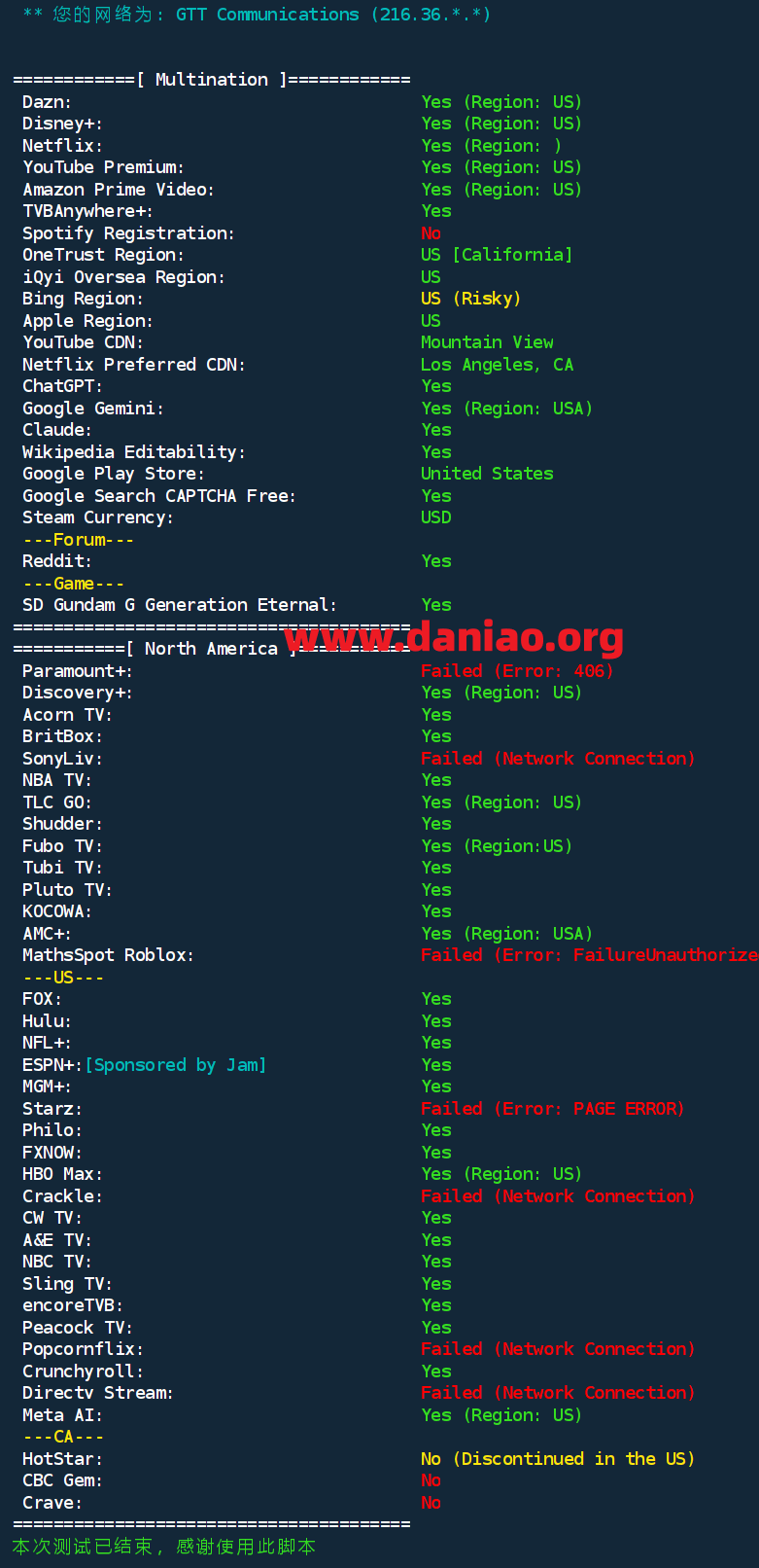 IP为GTT提供的新IP,解锁能力可见上面的测评数据,还是很不错的。