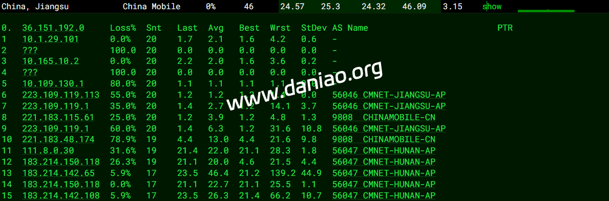 | 中国移动 | 湖南长沙移动 1ms | 西藏拉萨移动 64ms | 26ms |