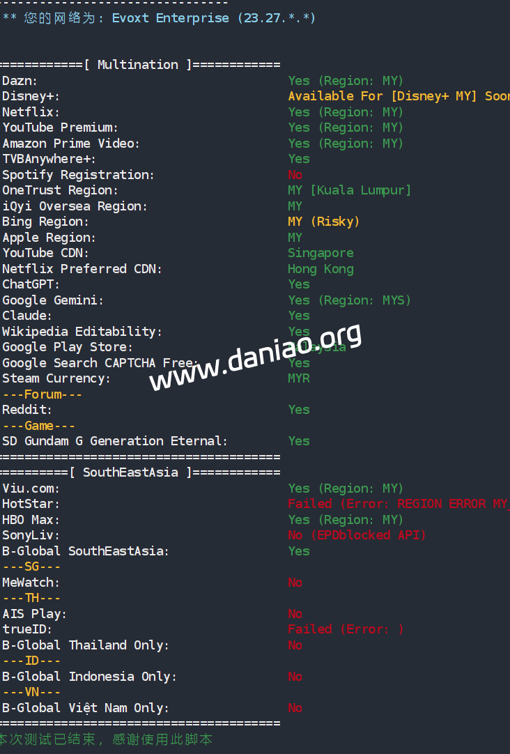 流媒体:IP 位于马来西亚,解锁情况还不错