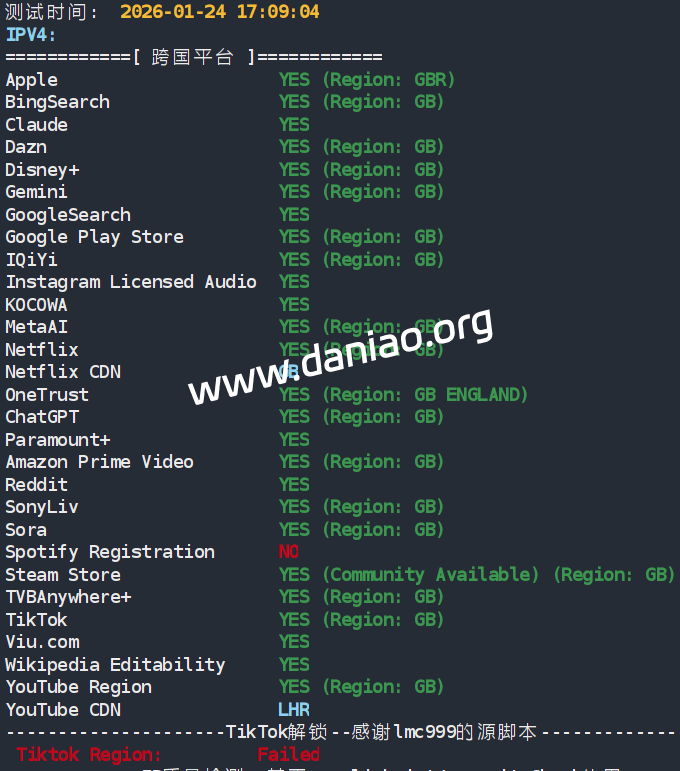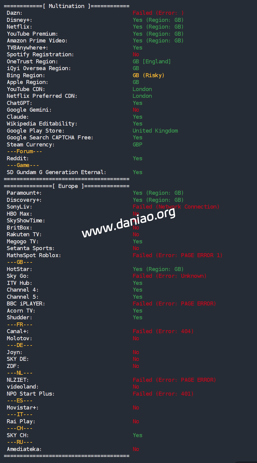IP为英国原生,具有ISP属性,具体的解锁看上面的测评数据。