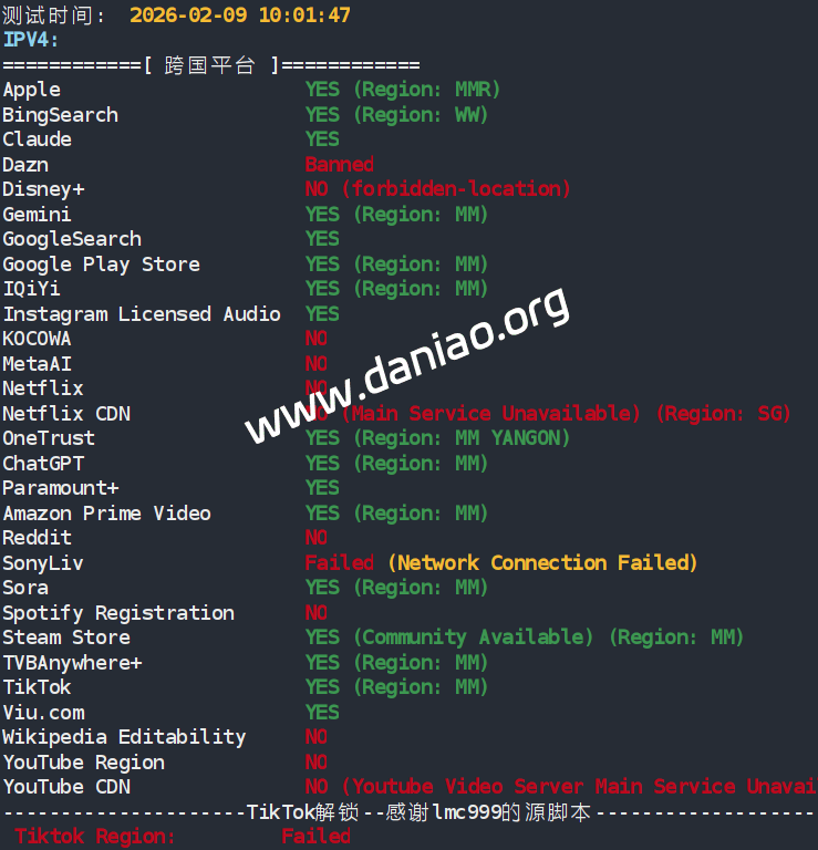 IPv4/IPv6          : ✓ Online / ✗ Offline