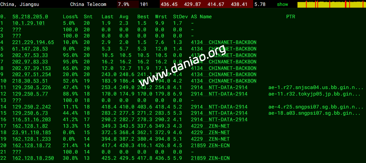 20     371.80ms  101.226.*.*  AS4812    [CHINANET-SH]     中国 上海市 chinatelecom.cn 电信
