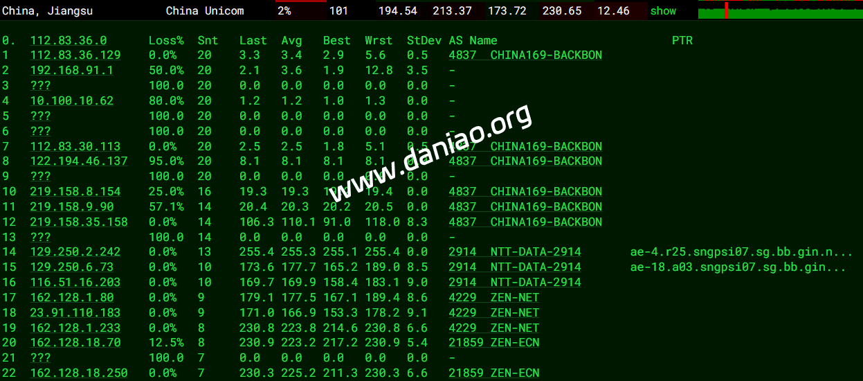 14-15  289.33ms  219.158.*.*  AS4837    [CU169-BACKBONE]  中国 上海 chinaunicom.cn 联通