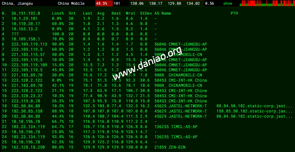 20     270.61ms  117.185.*.*  AS9808    [CMNET]           中国 上海市 chinamobileltd.com 移动