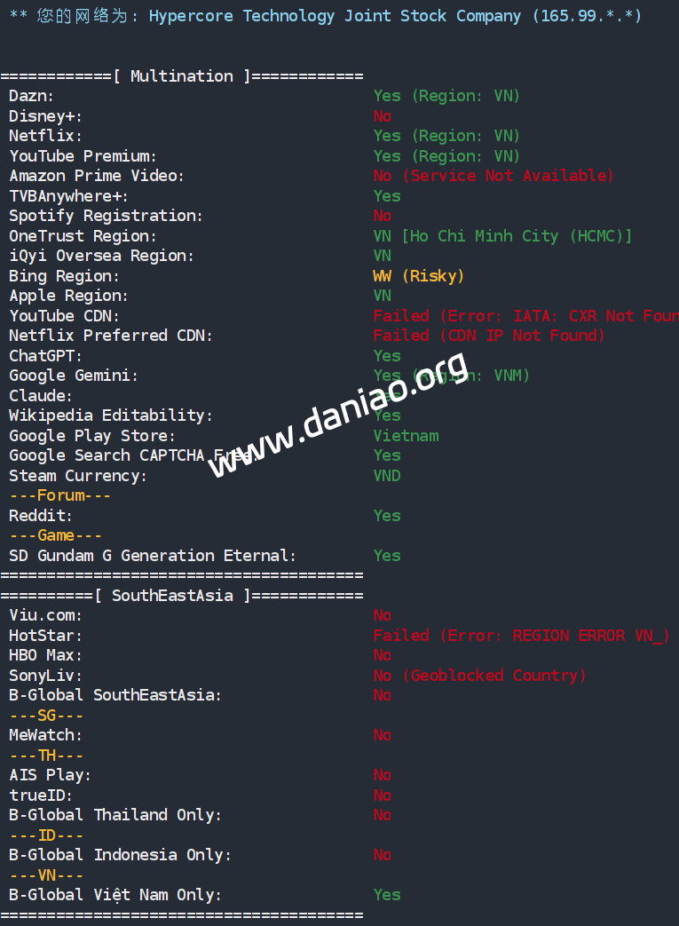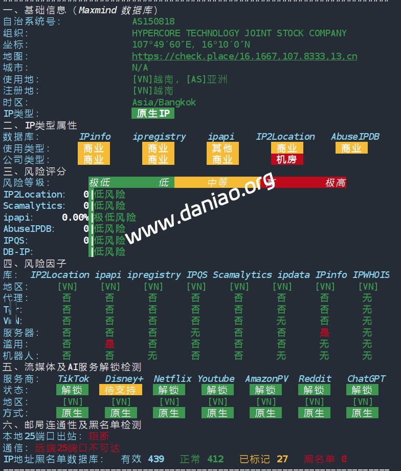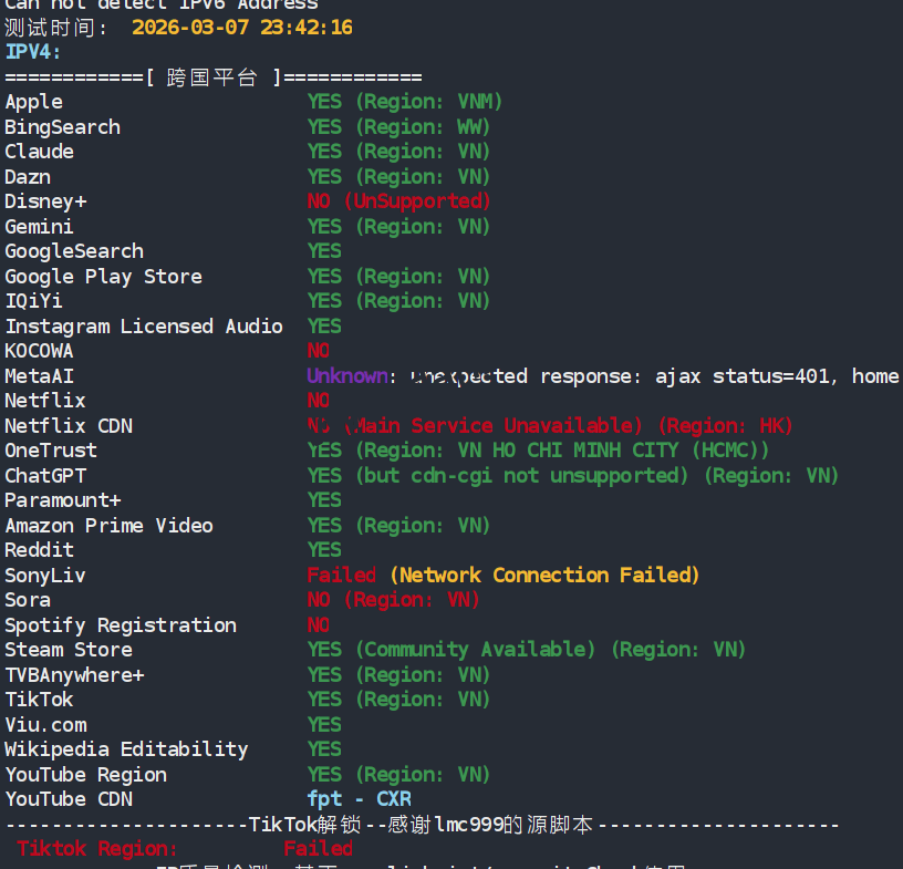 IP为越南原生IP,解锁能力还可以。