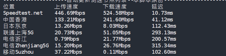 Node Name        Upload Speed      Download Speed      Latency
