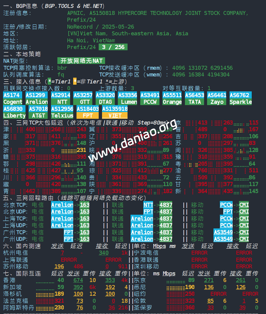 8      22.24ms  183.80.*.*   AS18403   [APNIC-AP]        越南 河内市 fpt.vn