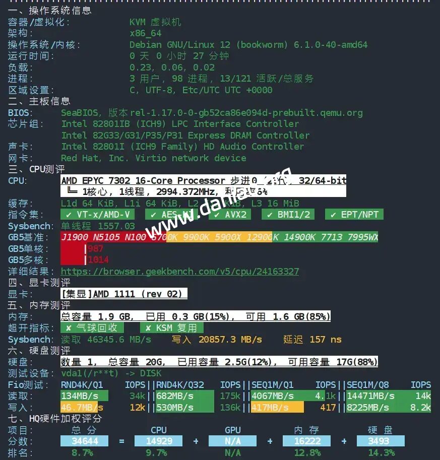 VPS性能还是很不错的,毕竟宿主机是AMD EPYC™ Rome(7002) 处理器+NVMe 块存储的配置