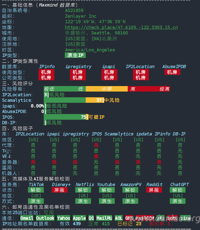 IP为原生IP, 有点解锁能力。