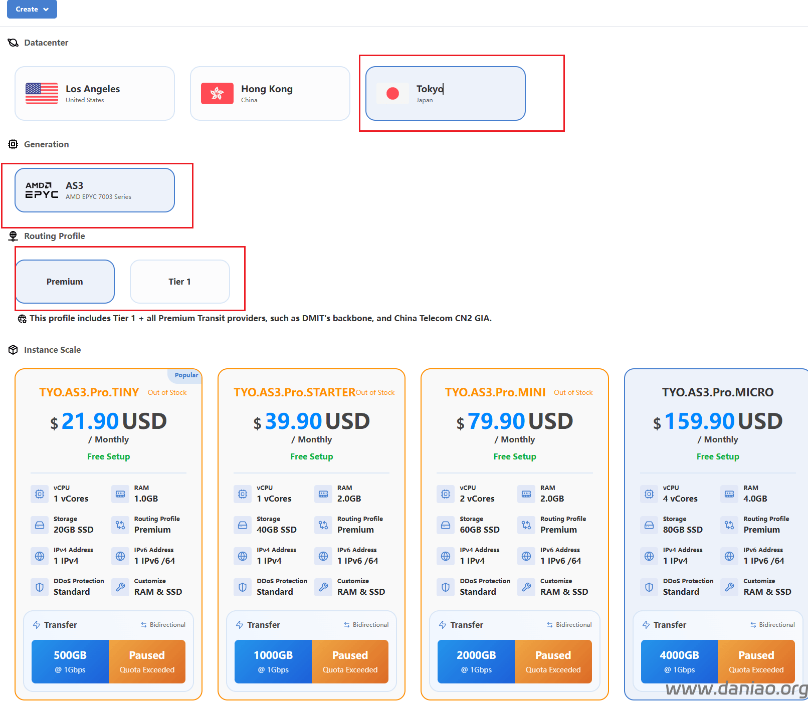 DMIT,日本Eyeball(TYO.AS3.EB)VPS套餐可能下架,目前打开日本套餐页面只显示Premium(TYO.AS3.Pro)和Tier 1(TYO.AS3.T1)套餐,Eyeball套餐却不见踪影。日本Eyeball(TYO.AS3.EB)套餐,路由为三网回程 CMIN,电信/联通 CTG GIA 去程;移动 CMI 去程。关于是否下架还不知道具体原因,DMIT还没在官方群发布相关通知。