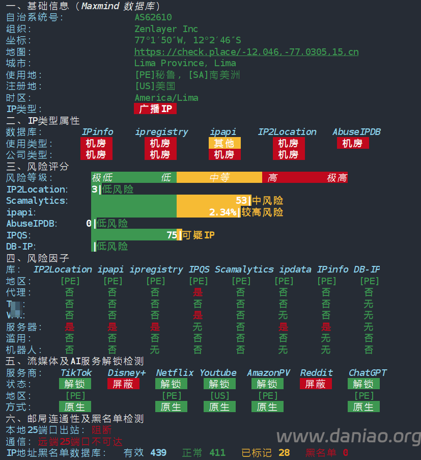 标注红色文字的为测评机器,机房为秘鲁首都利马~