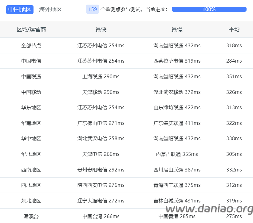 | 上海 | 163 | 264ms | 秘鲁 → 美国 → 163骨干 → 上海 |