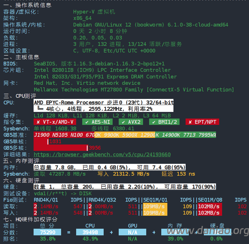 CPU根据推测是可能是 EPYC 7282 或定制规格 ,AMD EPYC Rome 发布于 2019 年,采用 Zen 2 架构。磁盘IO:107.0 MB/s(当前测试)
