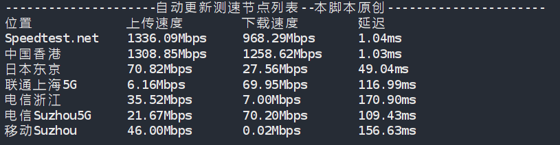 中国香港 1308.85 Mbps 1258.62 Mbps 1.03 ms ⭐⭐⭐⭐⭐ 最佳