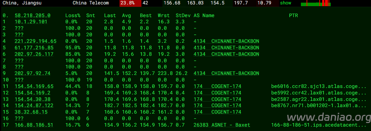 | 北京 | Arelion → 163 | AS1299 → AS4134 | 158ms | 普通163 |