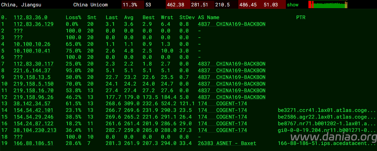 结论:北京联通绕路严重(经欧洲/德国),上海/广东联通尚可。
